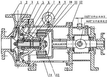 不銹鋼防爆高溫保溫磁力泵(風冷/水冷/保溫夾套)結構圖