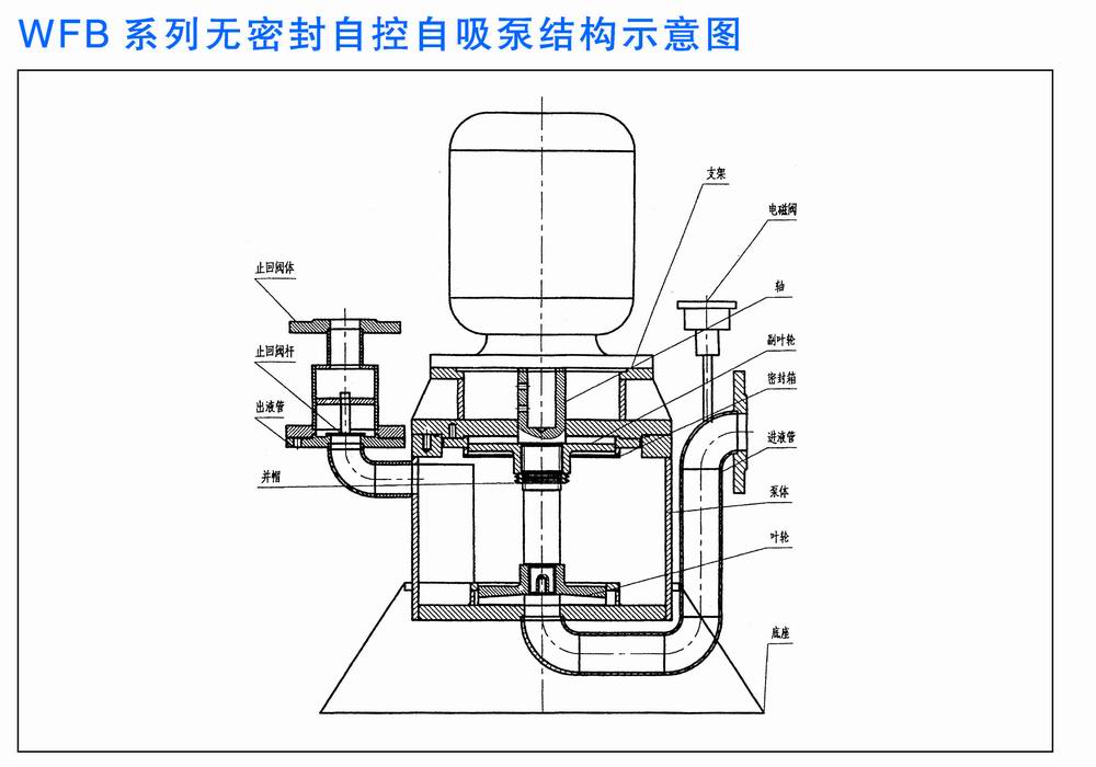 WFB系列無密封自控自吸泵,是填補國內空白的首創產品,該產品具有耐溫、耐壓、耐磨、“一次引流”、“終生自吸”等多種功能。目前生產不銹鋼、增強聚丙烯、鑄鋼、鑄鐵等多種材質的系列整機,五種不同造型共一千余種規格,在電力、電力、化工、冶金、醫藥、食品、電鍍、環保、消防、市政、凈水、國防軍工、紡織印染、采掘選礦、民用建筑等行業中廣泛運用,深受用戶的好評。