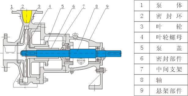 IH防爆不銹鋼化工離心泵結構原理示意圖