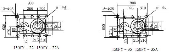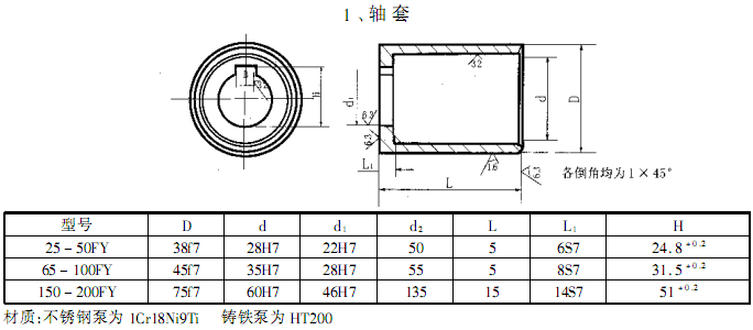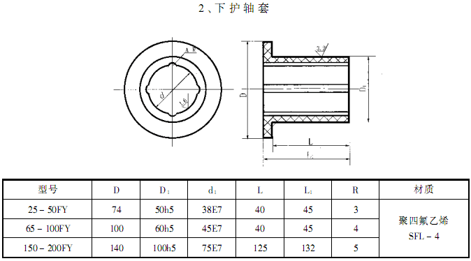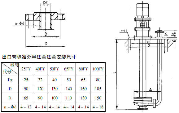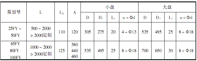 此外,F(xiàn)Y型耐腐蝕液下離心泵系列,因伸入容器長度L的長短不同,則又分為中間導(dǎo)軸承之結(jié)構(gòu)和無中間導(dǎo)軸承的結(jié)構(gòu)。