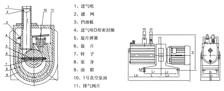 直聯(lián)旋片式真空泵的結構圖及安裝尺寸圖