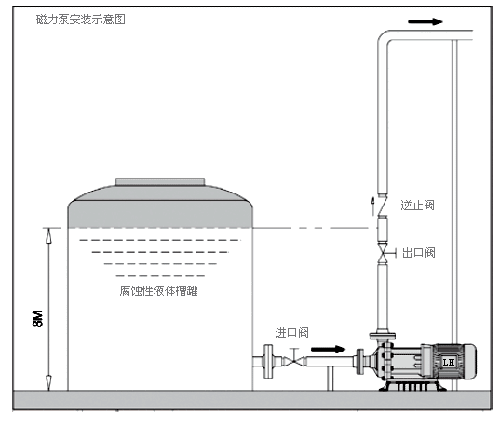 (一)磁力泵應水平安裝,不宜豎立,泵體不得承受管路重量,對于特殊要求垂直安裝的場合,電機務必朝上.