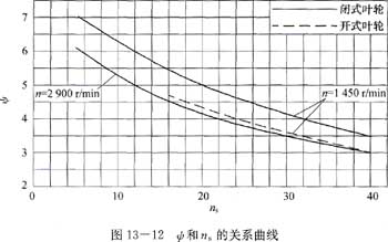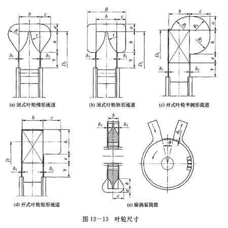 ∞根據圖13-12確定,對于開式葉輪,葉輪外徑D2(圖13-13)按下式計算