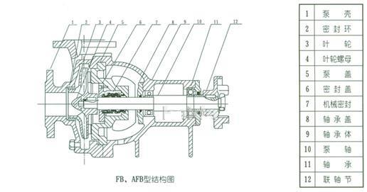 AFB、FB型不銹鋼耐腐蝕離心泵結構說明與安裝結構圖