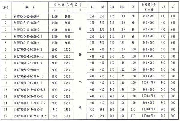 注:設計人員也可根據實際情況確定污水池(集水坑)的平面尺寸。污水池(集水坑)深度應小于等于6.0m