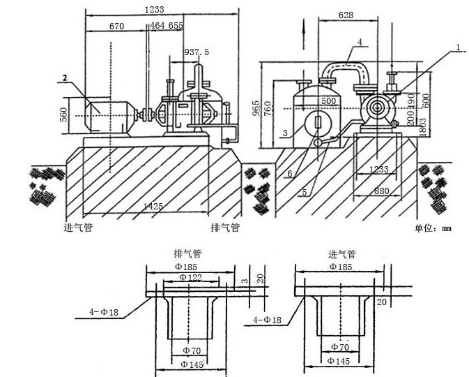 ①圖四:SZ-1水環(huán)式真空泵安裝尺寸圖![]() |