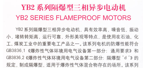 YB2系列電機是在YB系列電機基礎上更新設計的電機,系列設計總結了YB系列電機在生產制造過程中積累的經驗,應用了計算機輔助設計(CAD)、絕緣結構、機械結構、隔爆結構、工藝、材料、測試等領域的技術成果,借鑒了同類產品的先進技術,使得新系列電機性能更優,外形更美。是拖動一般用途機械的理想產品。