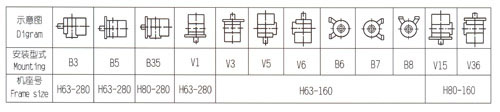 1、圖為B35型圖樣,機座帶底腳.端蓋 上有凸緣。其中H63—71無B35型式。