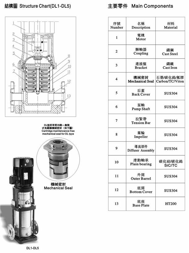 CDLF立式不銹鋼沖壓泵為安裝標準電機的非自吸立式多級離心泵,電機軸通過泵頭用聯軸器直接與泵軸聯接,拉桿螺栓將耐壓筒、過流部件固定在泵頭和進出水段之間,泵進出水口在泵底同一直線上;CDLF不銹鋼立式多級沖壓泵是一種多功能產品,可以輸送從自來水到工業液體的各種不同介質,適應于不同溫度、流量和壓力范圍,CDLF不銹鋼立式多級沖壓泵適用于輕度腐蝕性液體。本泵可根據需要配置智能保護器,對泵干轉、缺相、過載等進行有效保護