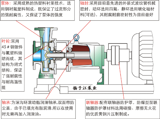 IHF單級單吸式氟塑料合金化工離心泵(簡稱IHF離心泵)是按國際標準并結合非金屬泵的工藝設計制造。泵體采用金屬外殼內襯聚全氟乙丙烯(F46),泵蓋、葉輪和軸套均用金屬嵌件外包氟塑料整體燒結壓制而成,軸封采用外裝式先進的波紋管機械密封,靜環選用99.9%氧化鋁陶瓷(或氮化硅),動環采用四氟填充材料,其耐腐耐磨密封性極好。泵的進出口均采用鑄鋼體加固,以增強了泵的耐壓性。實際使用顯示,該泵具有耐腐、耐磨、耐高溫、不老化、機械強度高、運轉平穩、結構先進合理、密封性能嚴格可靠、拆卸檢修方便、使用壽命長等優點安徽氟特泵業
