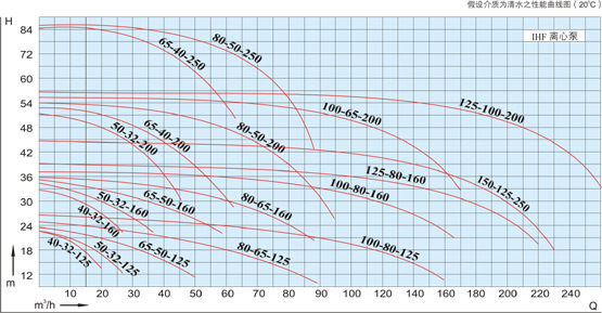 例:IHF50-32-125 IH:標準化工離心泵代號   F:泵的主要材料為氟塑料