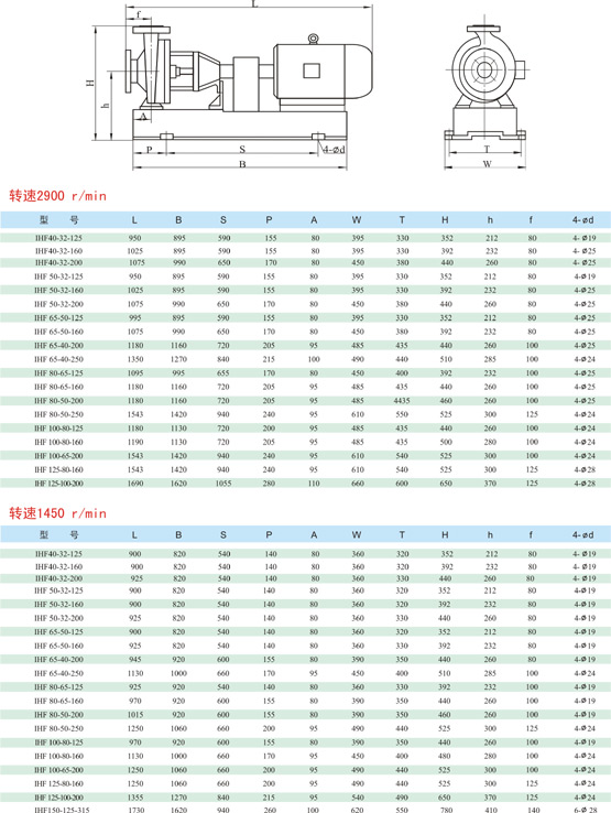 | IHF100-80-160 | 100 | 32 | 15 | 4.5 | 73 | 50 | 8 | 2.2 | 4.5 | 69 |