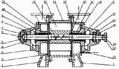 SK型水環(huán)式真空泵的拆卸分為部分拆卸檢査和完全拆卸修理及更換零件,在拆卸前應(yīng)將泵腔內(nèi)的水放出.并將進(jìn)氣及排氣拆下。在拆卸過(guò)程中,應(yīng)將所有的墊謹(jǐn)慎地取下,如發(fā)生損壞'應(yīng)在裝配時(shí)更抽象同樣厚度的新墊。泵應(yīng)從后端(無(wú)聯(lián)軸器一端) 開(kāi)始拆卸,其順序如下: