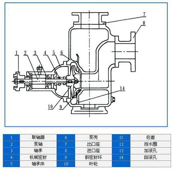 在一些泵的軸承體底部還設有冷卻室。當軸承發熱引起軸承體溫升超過70℃吋.可在冷卻室處通過任意一只冷卻液管接頭.注入冷卻液循環冷卻。泵內部防止液體由高壓區向低壓區泄漏的密封機構是前后密封環.前密封環裝在泵體上.后密封環裝在軸承體上,當泵經長期運轉密封環磨損到一定程度,并影響到泵的效率和自吸性能吋.應給予更換。