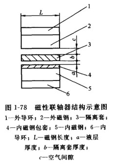 磁性聯軸器由內磁鋼(含導環和包套)、外進鋼(含導環)及隔離套組成(見圖1-78),是磁力泵的核心部件。磁性聯軸器的結構、磁路設計,及其各零部件的材料關系到進力泵的可靠性,磁傳動效率及壽命。