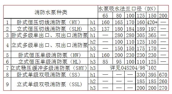 該規格消防泵放氣孔在出水法蘭部位,距吸水口中心高度(h1)為300~420mm.