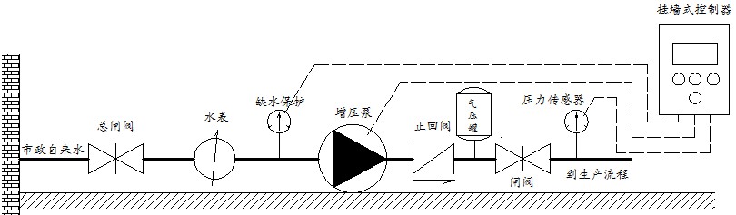 臨時供水系統組成圖,當功率較大時,控制器不能采用掛墻式,必須采用落地式控制器才能保證良好的散熱