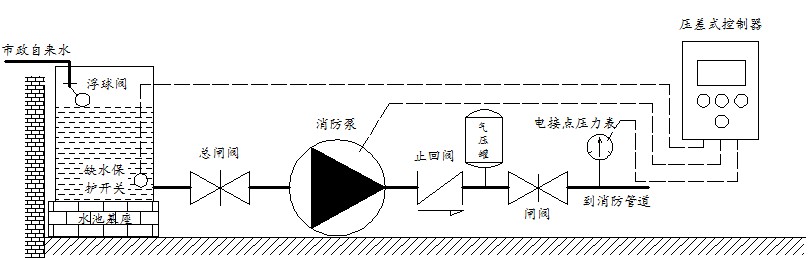 臨時消防供水系統原理圖,當功率較大時應采用落地式控制柜