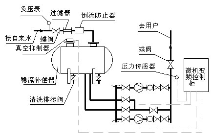 無負壓管網增壓穩流給水系統工作原理圖