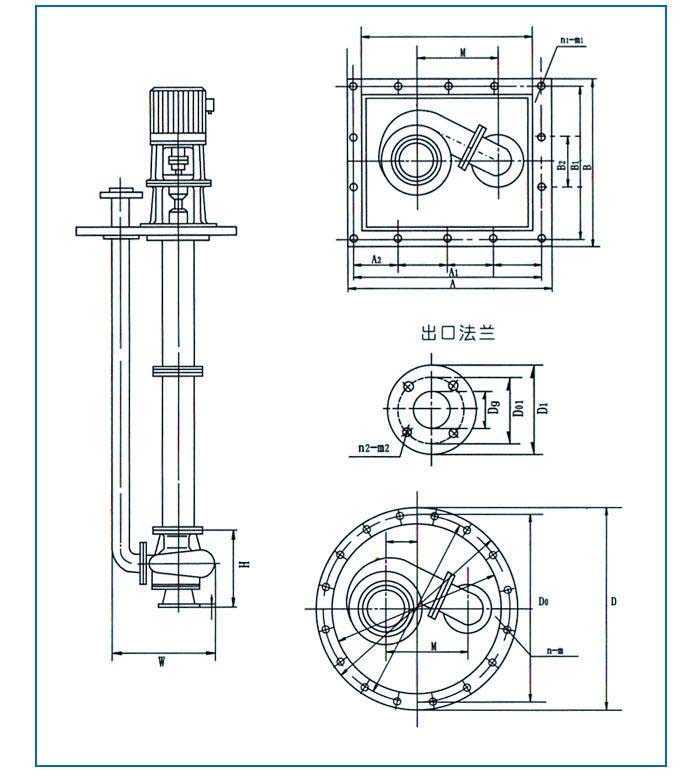 FY型化工耐腐蝕不銹鋼液下泵結構和安裝尺寸圖